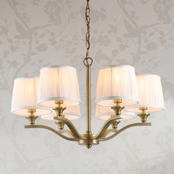 Laura Ashley Hemsley 6 Light Ceiling Chandelier In Matt Antique Brass With Ivory Shades